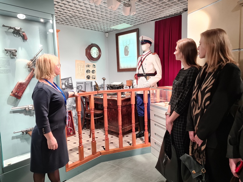 В ходе мероприятия представители различных служб Управления внутренних дел по Юго-Западному округу столицы узнали об истории органов внутренних дел города Москвы, посмотрели на форменное обмундирование и вооружение сотрудников Московской полиции разных эпох. Экскурсанты увидели полицейскую будку 1840-1870 годов, костюм и алебарду градского стража, ведомственные медали и нагрудные знаки, ознакомились с текстом Присяги личного состава советской милиции. Современная столичная полиции берёт свое начало в Московской Руси. В XII-XV веках за соблюдение правопорядка и законности отвечал в первую очередь князь, его тысяцкий, великокняжеский наместник и старосты на местах. Первые административно-полицейские единицы – трети – появились в Москве в XIV веке, а уже в конце XVI века появилась сеть полицейских участков. Правовая основа организации и деятельности регулярной полиции была заложена петровскими реформами, именно Петр I определил основные задачи российской полиции. Сотрудник музея также рассказала присутствующим о работе Советской рабоче-крестьянской милиции в военное время и функциях, которые на неё возлагались, отметив, что в годы Великой Отечественной войны около 25% личного состава милиции ушло на фронт. Весной 1941 года, когда враг подошел к Москве, из городской милиции были сформированы строевые подразделения, входившие в состав дивизии милиции, которая предназначалась для боевых действий на ближних подступах к столице. В условиях военного времени перед органами внутренних дел возникли специфические задачи, среди которых организация противовоздушной обороны Москвы и ликвидация последствий бомбардировок. Собравшимся рассказали об истории создания и развития ГИБДД, показали обмундирование сотрудника милиции отдела регулирования уличного движения образца 1931 года. Отдельное внимание уделили службе «02», которая была образована в составе Дежурной части ГУВД Мосгорисполкома в 1971 году, и показали телефон-автомат того периода. В завершение мероприятия полицейские поблагодарили экскурсовода и организаторов за познавательное мероприятие.
