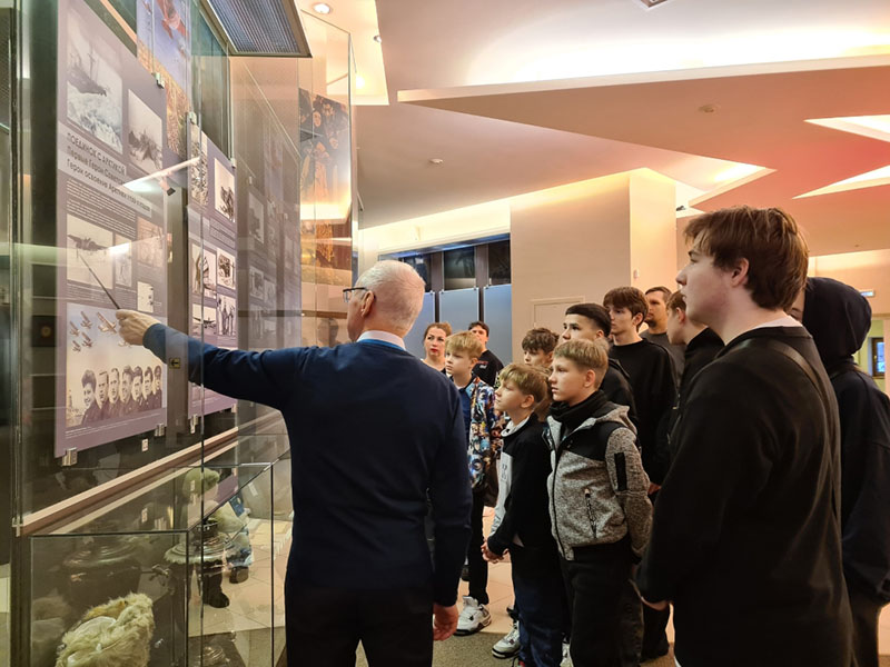 Ребятам рассказали о том, кто такие Герои Советского Союза, Герои Российской Федерации и как ими становятся. Отдельно экскурсовод остановился на медали «Золотая Звезда», макет которой установлен в музее. Дети узнали имена первых Героев Советского Союза. Ими стали покорители Арктики в 1930-х годах. В апреле 1934 года постановлением ЦИК СССР было учреждено звание Героя Советского Союза. Первыми его были удостоены семь летчиков - Анатолий Ляпидевский, Сигизмунд Леваневский, Николай Каманин, Василий Молоков, Маврикий Слепнев, Михаил Водопьянов и Иван Доронин. Они принимали непосредственное участие в спасении челюскинцев. Ранее, в феврале того же года, пароход «Челюскин», совершая экспериментальное плавание по Северному морскому пути, был раздавлен льдами и затонул в Чукотском море в 270 км от берега. Экипаж судна, участники экспедиции и пассажиры оказались на дрейфующей льдине. Благодаря спасательной операции, в которой главную роль сыграла авиация, все потерпевшие кораблекрушение были благополучно спасены. Экскурсовод рассказал воспитанникам Центра о героях боевых действий в Афганистане в 1979-1989 годах. Одним из них является Герой Советского Союза Сергей Гущин, который принимал участие в шести боевых операциях. Несмотря на тяжелую контузию, он при поддержке своего батальона смог выполнить поставленную задачу. Гости осмотрели представленные в музее фотографии и личные вещи Героев, их форменное обмундирование и служебные удостоверения, наградные листы и архивные документы.