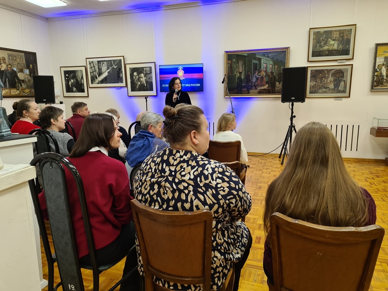 В культурно-просветительском мероприятии приняли участие заместитель председателя Совета ветеранов УВД по ЮЗАО капитан милиции в отставке Константин Иванов, ветераны органов внутренних дел и личный состав Управления. Гостям рассказали о Министре внутренних дел СССР генерале армии Николае Щёлокове. По его приказу в 1969 году в целях создания в произведениях искусства положительного образа сотрудника милиции была основана вышеуказанная Студия художников. Позднее, в 1993 году, Студии художников МВД России было присвоено имя великого русского живописца Василия Васильевича Верещагина. На выставке «Русский детектив» ветераны узнали о личности Ивана Дмитриевича Путилина – первом начальнике сыскной полиции Санкт-Петербурга. Экскурсовод рассказала о его наградах и профессиональных достижениях. Представленная на выставке картина художника В.Ю. Желвакова повествует о том, как Иван Путилин раскрывает убийство иеромонаха Иллариона. Чтобы выйти на след преступников, сыщик часто прибегал к маскировке и внедрению в преступные круги, не редко таким решением подвергая свою жизнь опасности. Гости выставки увидели работу О.А. Леонова «Убийство». На полотне художник изобразил двоих милиционеров возле накрытого белой простыней убитого человека. Во второй части мероприятия ветеранов ждал сюрприз. Администрация Студии художников совместно с Культурным центром МВД России подготовили для гостей яркую и насыщенную концертную программу. Артисты группой и сольно исполнили известные песни из популярных кинофильмов, подарив посетителям отличное настроение и заряд позитива на весь день.
